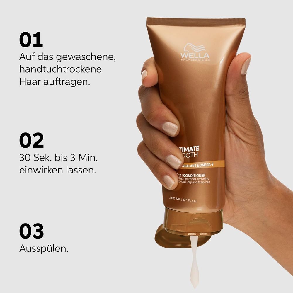 Der Wella Professionals Ultimate Smooth Conditioner entwirrt, pflegt und glättet das Haar spürbar – ganz ohne es zu beschweren. Die reichhaltige Formel bändigt Frizz, schenkt dem Haar ein seidig-weiches Gefühl und verleiht Glanz sowie optimale Kämmbarkeit – ideal für dickes, widerspenstiges oder krauses Haar.